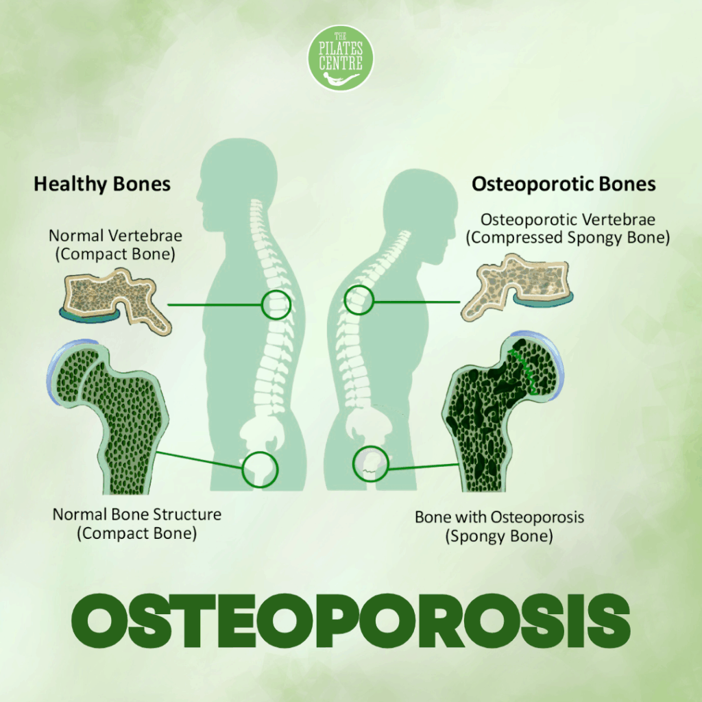 Osteoporosis is often called the “silent disease,” quietly weakening bones until something breaks — often a wrist, hip, or spine. It’s most common in postmenopausal women but can affect anyone. The good news? Movement, especially mindful, weight-bearing movement like Pilates, plays a powerful role in strengthening bones and preventing bone loss.